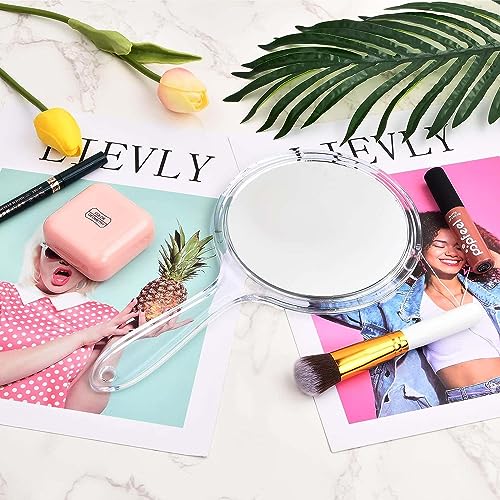 Hcoviv 1 specchio a mano con manico, specchio a mano con ingrandimento, specchio bifacciale 1X/3X ingrandimento, specchio cosmetico, specchio da trucco, forma rotonda, trucco quotidiano da donna