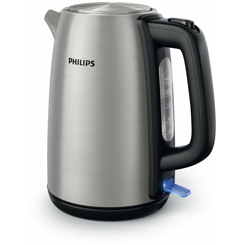 Philips Daily Collection Bollitore in metallo da 1,7 l con spia e coperchio a molla. Capacità tanica acqua: 1,7 L. Potenza: 2200 W. Colore del prodotto: Acciaio inossidabile, Materiale della scocca: Acciaio inossidabile, Polipropilene (PP), Indicatore del livello dell'acqua. Senza filo. Filtro
