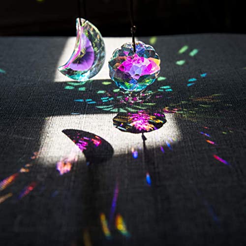 HDCRYSTALGIFTS, ciondolo con cristalli colorati pendenti Crescent Moon ciondolo per finestra, ornamento Suncatchers lampadario Rainbow Maker