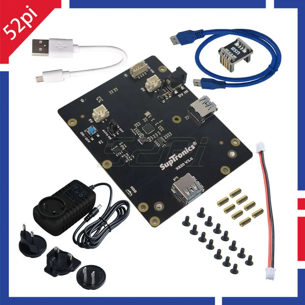 X820 V3.0 2.5 Inch SATA HDD/SSD Storage Expansion Board with DC 5V 4A Power Adapter Plug for Raspberry Pi 3 B+ (Plus) /3 B