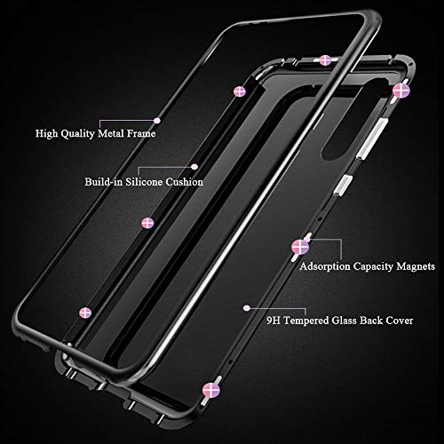 HDTOSNER Custodia Huawei P20 PRO, Cover Case Protettiva [Adsorbimento Magnetico] [Supporta la Ricarica Wireless] [Vetro Trasparente Temperato Back Cover] per Huawei P20 PRO Metallo Bumper (Nero)