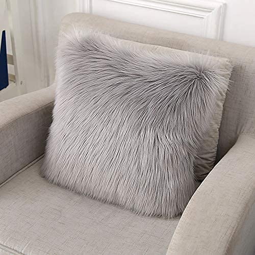 Hdurj Federa Cuscino,in Lana Artificiale Fodera per Cuscino, Super Soft Fodera per Cuscino in Pelle Deluxe Home Decor Decorativo Camera da Letto Federa Divano (grigio, 1 pcs 45*45)
