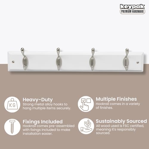 Headbourne Hr4094H - Appendiabiti con 4 ganci resistenti in nichel, su asta in legno