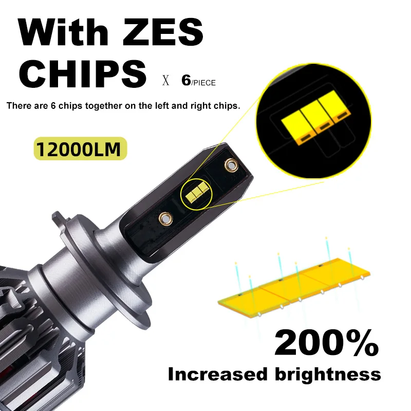Car Headlight H4 60W 12000LM LED H7 ZES chip H1 H3 H11 880 9005 9006 4500K 8000K 6500K car Styling Auto Headlamp Fog Light Bulbs