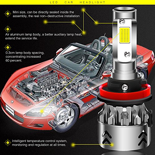 【Super luminosità 】Le lampadine LED per fanali utilizzano chip LED COB ad alta luminosità. 80W e 8000 lumen per coppia. Fino a 200% di luminosità in più rispetto ai comuni fari alogeni. La tecnologia con chip LED può essere una buona soluzione al problema dei riflessi e dell'astigmatismo.