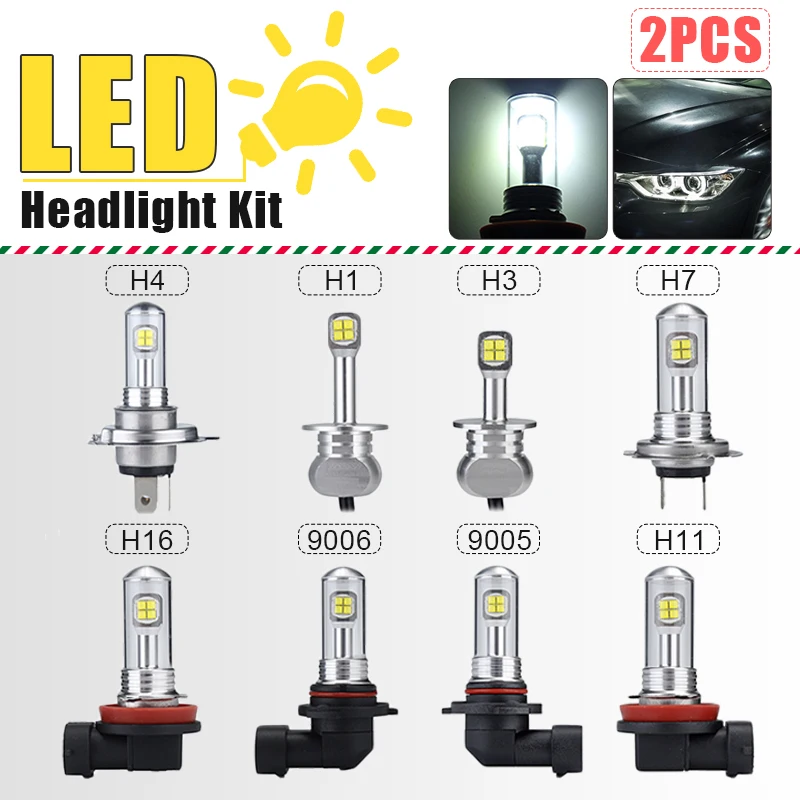 2PCS 80W Mini LED Car Headlight Bulb Fog Lamps Daytime Running Light Car LED Lights H1 H3 H11 H16 9005 9006 1500lm White 6000K