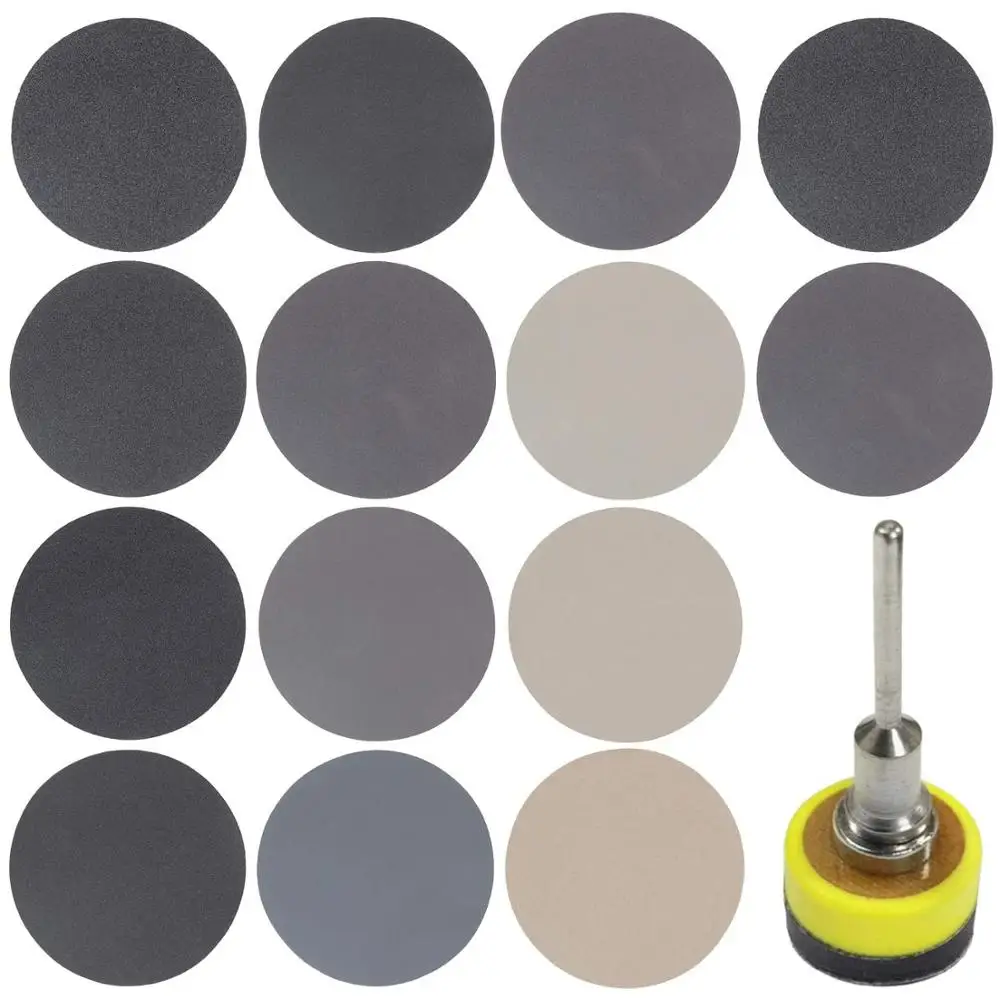 Car Headlight Polishing Kit 180 PCS 1 Inch Sandpaper Wet Dry Sander Discs Grit 60-10000 with Backing Pad Soft Foam Buffering Pad