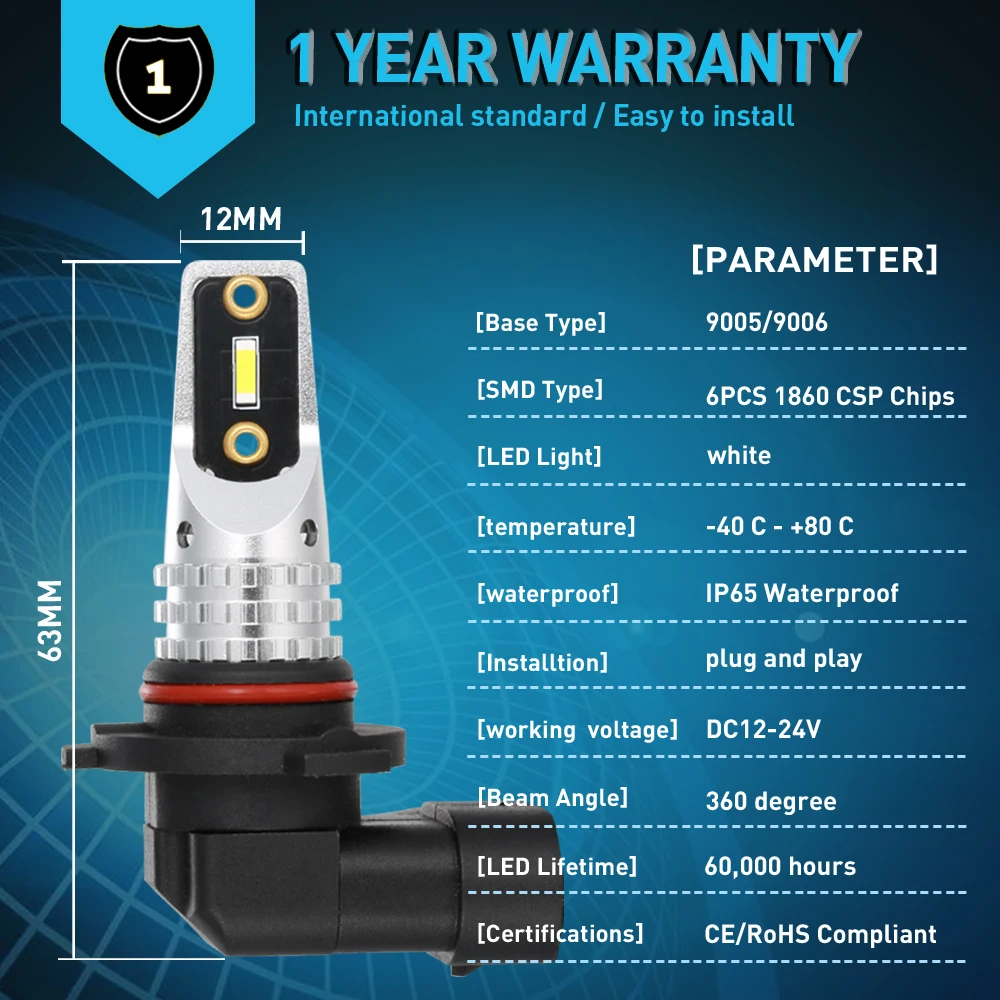 2X 9005 HB3 9006 HB4 H11 H4 Led Car LED Fog Headlight Bulb Auto Fog Lamp Day Running Light for Ford Fiesta Fusion Focus Mazda 3