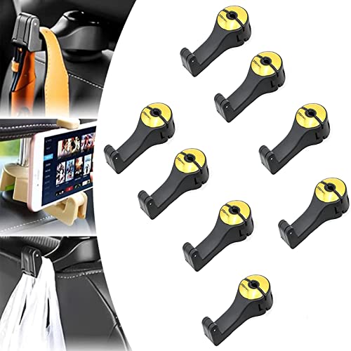 2 in 1 Car Headrest Hidden Hook, 2023 New 2 in 1 Car Seat Hooks with Phone Holder, Universal Car Headrest Hooks, 360° Rotation Headrest Hooks for Bag, Purse, Toys, Groceries ( Color: Yellow, Size:
