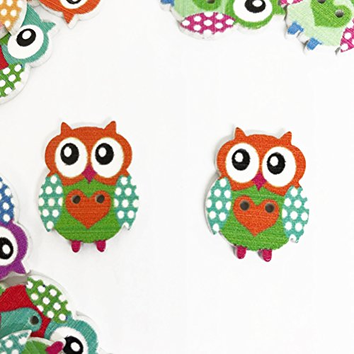 Healifty Bottoni in Legno Forma Gufo per Cucito 50 Pezzi (Colore Misto)