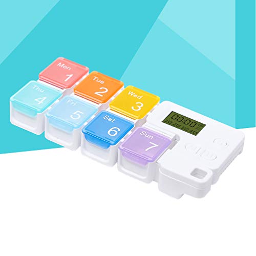 Healifty Portapillole portatile 7 scomparti Portapillole con promemoria di allarme Portapillole da viaggio portatile Portapillole con timer digitale senza batteria (arcobaleno)