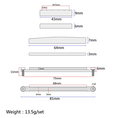 Chitarra acustica di sollevamento regolabile Brigde Saddle Set di dadi inferiori superiori per chitarra folk