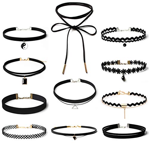 HEALLILY 11- Pezzo del Choker della Collana Donne del Nastro della Collana del Choker Collane Chocker Nero con La Catena Estesa per Le Ragazze delle Signore delle Donne