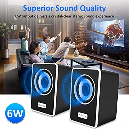 【Qualità del suono stereo 】- Altoparlante per computer con unità a doppia unità di grandi dimensioni da 3w*2, fino a 6W di uscita, si può facilmente godere dell'ambiente sonoro come se fosse esposto alla sala da concerto o al cinema. L'eccellente qualità del suono dell'altoparlante per pc è perfetta per la musica e la visione di film. È possibile godere di un suono di alta qualità mentre ci si rilassa al lavoro.