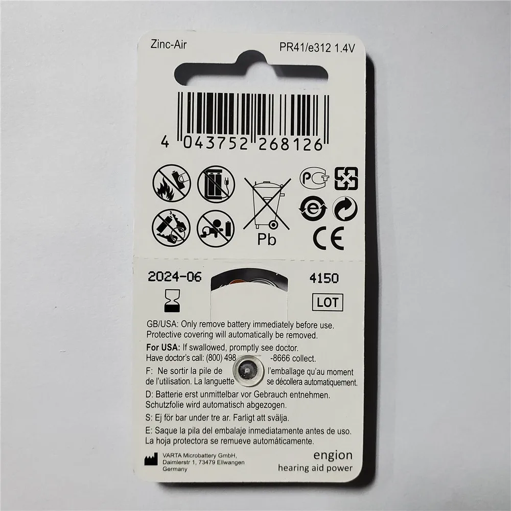Hearing Aid Batteries Size 312 za Engion Pro,Pack of 120,Brown Tab PR41 1.45V Type e312 Zinc Air Battery Amplifier with Case