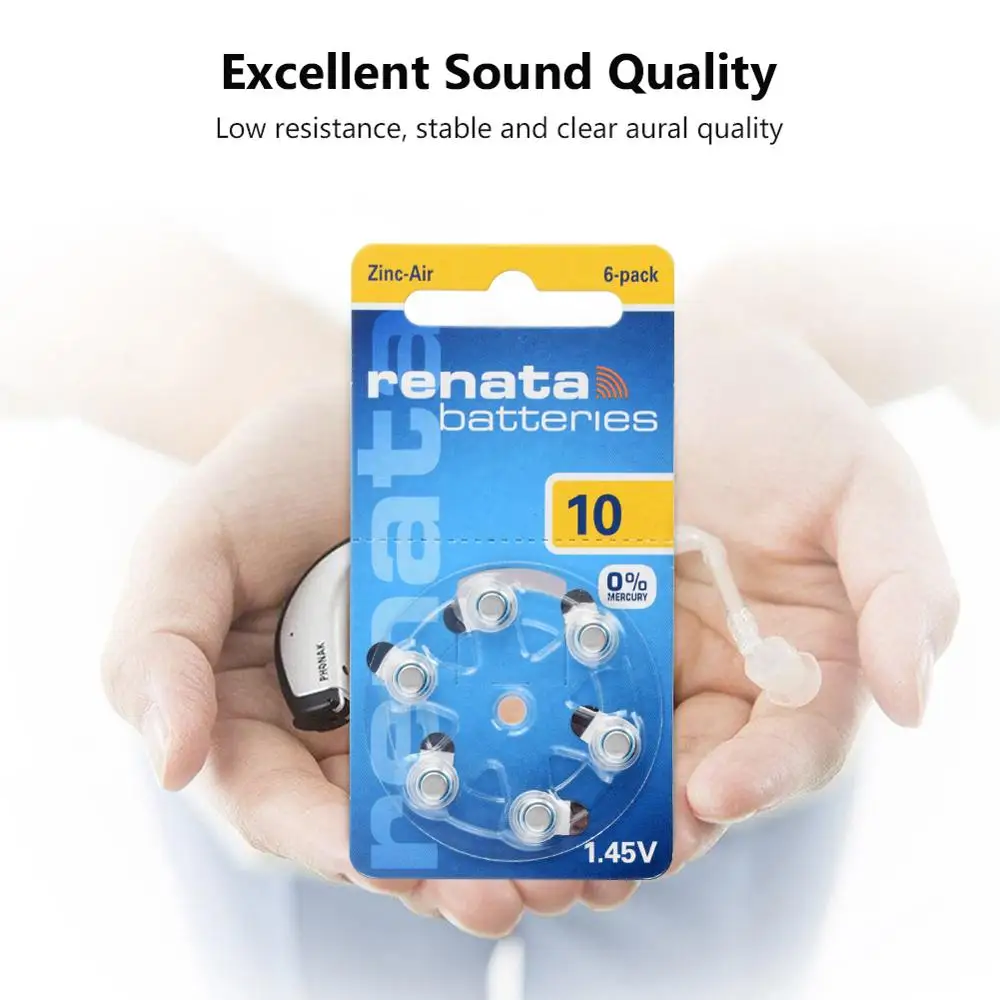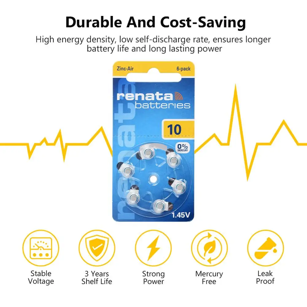 Hearing Aid Batteries Size 10 za Renata,Pack of 6,Yellow Tab PR70 1.4V Type A10 e10 Zinc Air Amplifier Battery p10 with Box