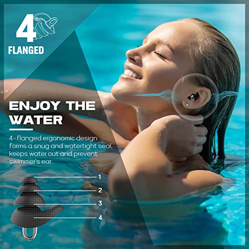[Design Ergonomico a 4-Flangia] I nostri nuovi tappi per orecchie piscina presentano un innovazione design ergonomico a 4 flangia che assicura un a tenuta acqua foca, prevenendo così l'ingresso dell'acqua nelle orecchie durante il nuoto. Le 4 flangia sono progettate per adattarsi comodamente alla forma unica del canale uditivo, offrendo una vestibilità sicura e confortevole. Goditi la tua nuotata senza preoccuparsi disagio o problemi legati all'acqua con questi tappi per orecchie!