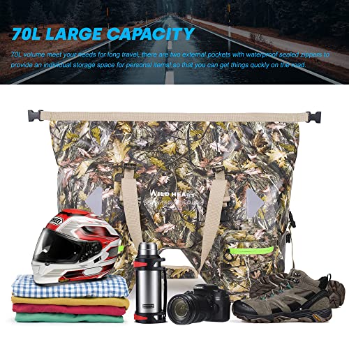 WILD HEART Borsa Da Sella Per Moto A Secco 70l Con Cinghie In Corda E Tasca Interna Impermeabile In Pvc 500d Per Viaggio, Moto E Così Via (foglie autunnali)