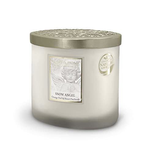 Candela profumata a base di cera di soia ellittica, 2 stoppini, fragranza Angelo d'inverno (scorza di arancia e patchouli) di marca Heart & Home.