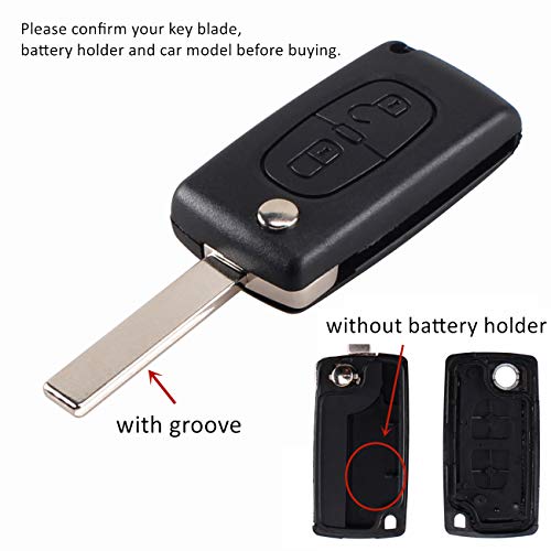 Heart Horse 2 Pulsanti Guscio chiave telecomando compatibile con Peugeot 107 207 307 307S 308 407 607 Citroen C2 C3 C4 C5 C6 C8 Xsara CE0536 (con scanalatura senza supporto batteria)