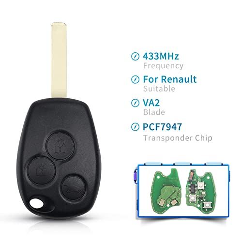 Heart Horse 433 MHz 3 pulsanti Telecomandi Auto Guscio Chiave per Telecomando per Ren-ault Trafic Vivaro Primastar Movano Dacia con PCF7947 chip VA2 lama