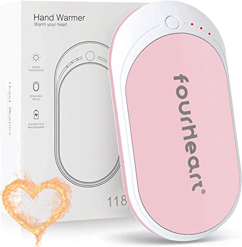 Four Heart Ricaricabile Scaldamani+Power Bank, Riutilizzabile USB/USB-C Mano Warmer, 5200mAh Portatile Banca di Potenza per iPhone/Samsung Galaxy/Huawei/Honor/ASUS (Rosa+Bianco, USB-C)