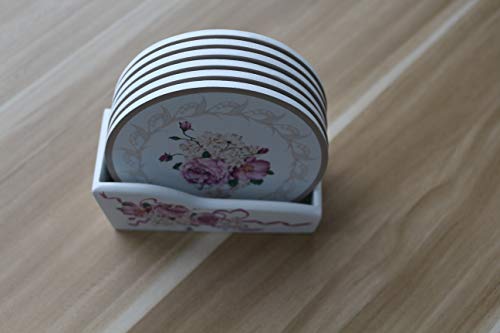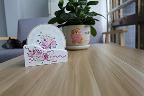 Set of 6 Heart Shaped Coasters in Wooden Provence Storage Box