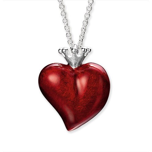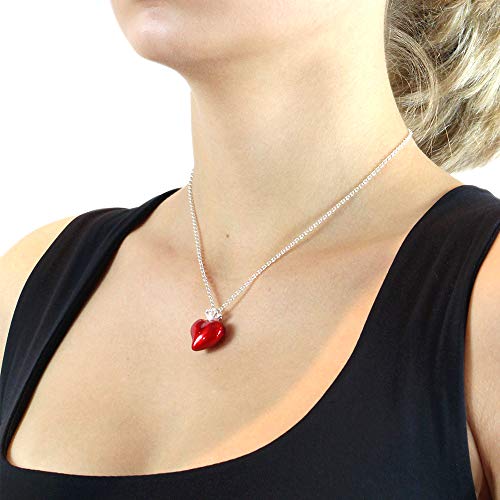 ALTA QUALITÀ: Il ciondolo romantico a forma di cuore con la corona in argento sterling 925 e a una lunghezza di 30 mm e larghezza di 24mm. È rifinito con vernice antincendio rossa (protetta dai raggi UV), che crea un'irresistibile lucentezza