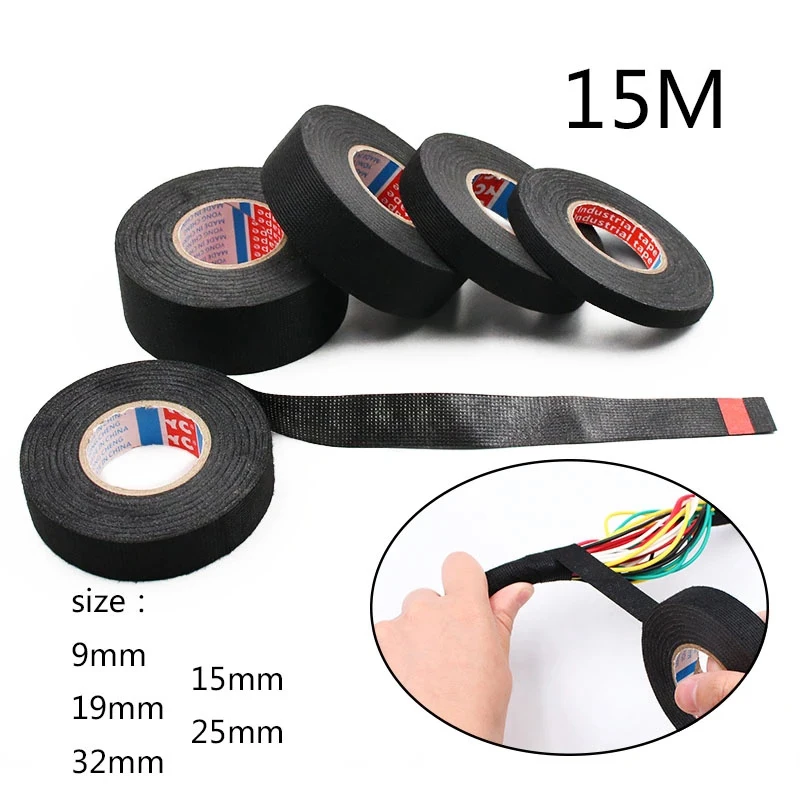 1pc Heat-resistant Adhesive Cloth Fabric Tape For Car Auto Cable Harness Wiring Loom Protection Width 9/15/19/25/32MM Length 15M