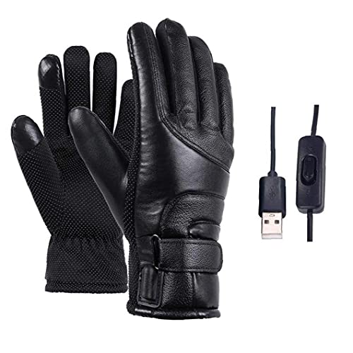 Heated Gloves Electric Winter Thermal Gloves Usb Touchscreen Waterproof Leather Black for Women Men Skiing Cycling