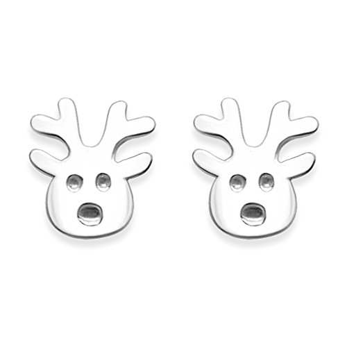 Heather Needham - Orecchini a forma di renna, in argento Sterling, dimensioni: 9 mm x 8 mm, confezione regalo in argento Rudolph