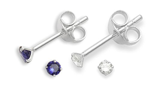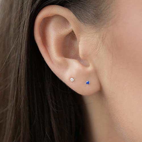 Heather Needham Silver - Set di 2 paia di orecchini a bottone in argento Sterling con zirconia cubica, dimensioni: 2 mm, molto piccoli e raffinati, colore: blu zaffiro e trasparente