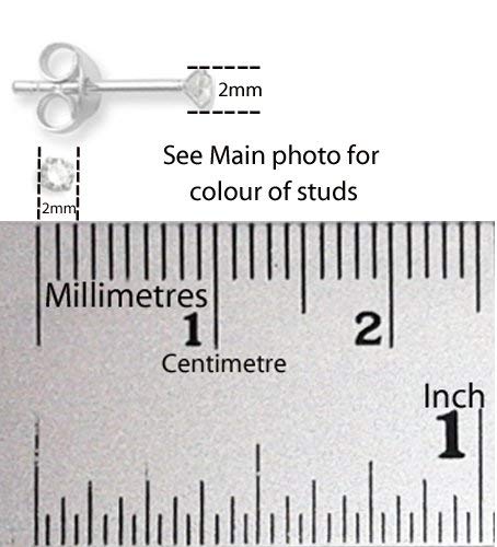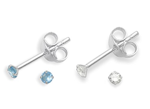 Heather Needham Silver - Set di 2 PAIA di orecchini a perno in argento sterling con zirconia cubica, dimensioni: 2 mm, molto piccoli e raffinati, colore: Azzurro/Trasparente