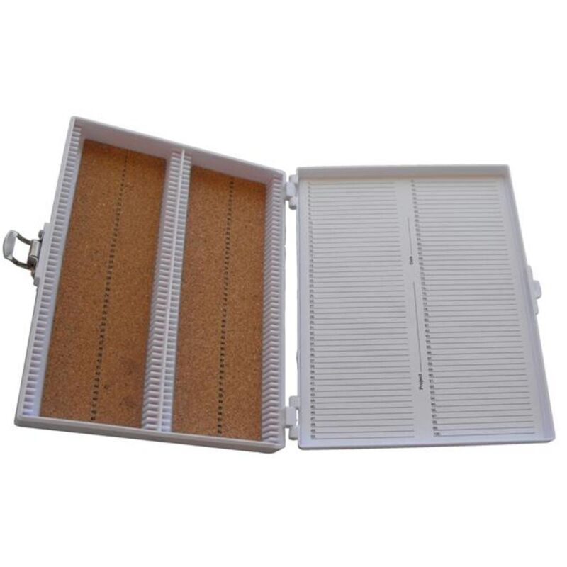 Le scatole per vetrini sono perfette per lo stoccaggio o il trasporto di diapositive di dimensioni standard.Scatole rigide sagomate tengono saldamente i vetrini nelle fessure scanalate.Tenere le scatole al sicuro sul piano di lavoro durante l'uso o impilarle per conservarle a lungo termine.Ogni scatola è fissata con un fermaglio nichelato resistente alla ruggine e un perno della cerniera.Ogni slot è numerato in modo da corrispondere al foglio di inventario delle diapositive sulla copertina interna della scatola.Le scatole si impilano saldamente l'una sull'altra.
