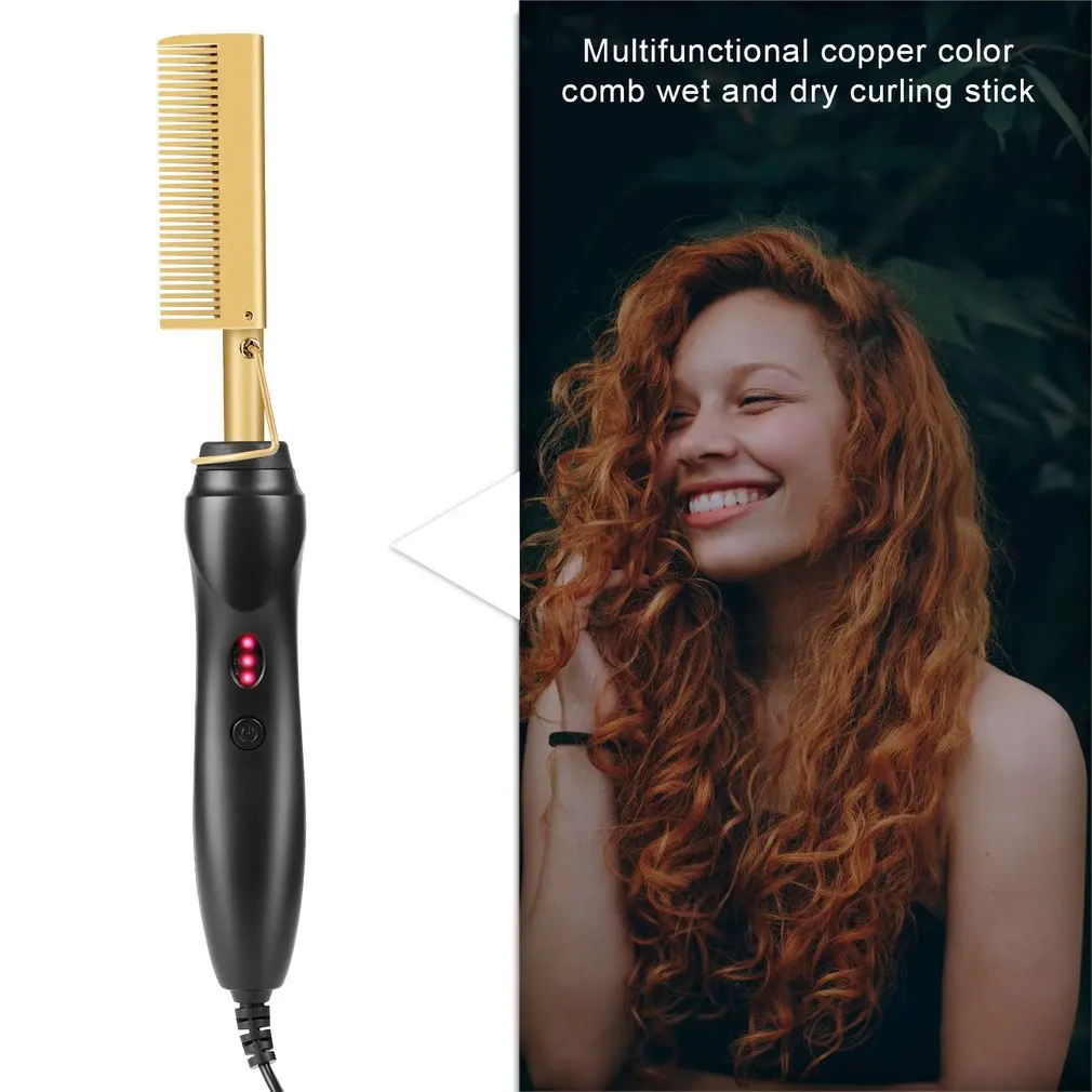 Hot Heating Hair Curler Comb Wet and Dry Hair Use Hair Curling Iron Straightener Comb Environmentally Friendly Titanium Alloy