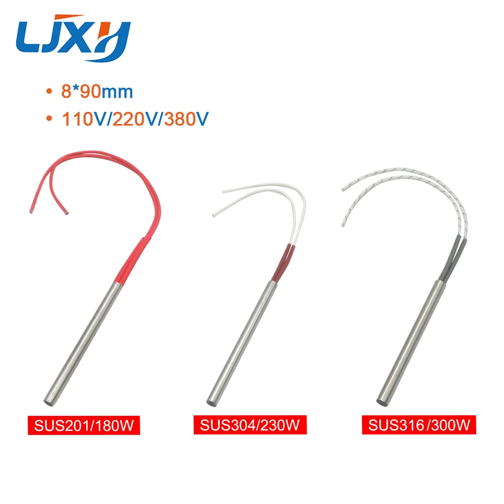 LJXH Heating Element Mould Wired Cartridge Heater 2PCS AC110V/220V/380V Single End Heating Cartridge 180W/230W/300W 8x90mm