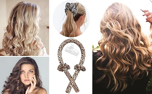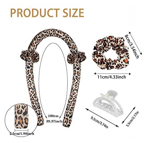 Heatless Curls Band, Hair Curler Ribbon Antiscivolo Heatless con forcine per capelli, Wave Formers durante la notte, senza calore, ferro arricciacapelli (motivo leopardato)