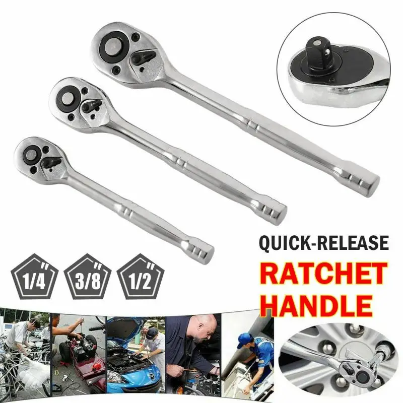 Heavy Duty Quick Release Ratchet Handle Set - 1/4" 3/8" 1/2" Auxiliary Equipment 3Pcs Car Repair Tool Carbon Steel
