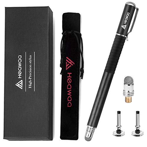 Penna stilo 2 in 1: la penna tattile HEAWAA ha entrambe le estremità dotate di un disco trasparente e alcune fibre conduttive rispettivamente. La punta del disco trasparente aiuta la penna a scorrere e si può vedere attraverso di essa comunque su touch screen, ottimo per disegnare/disegnare, prendere appunti, evidenziare testi, firmare documenti, pittura digitale. La punta a rete in fibra morbida è comoda e silenziosa quando scivola agevolmente sugli schermi, ideale per la navigazione e l'uso generali, scorrere, cliccare, selezionare o utilizzato come gomma.