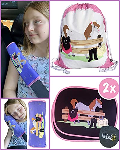 HECKBO 1x Protezione per Cintura di Sicurezza con Grazioso Cavallino - Spallina Imbottita, Imbottitura Cintura per Seggiolino Auto, Copricintura per Bambini e Bambine - Protezione contro Irritazioni