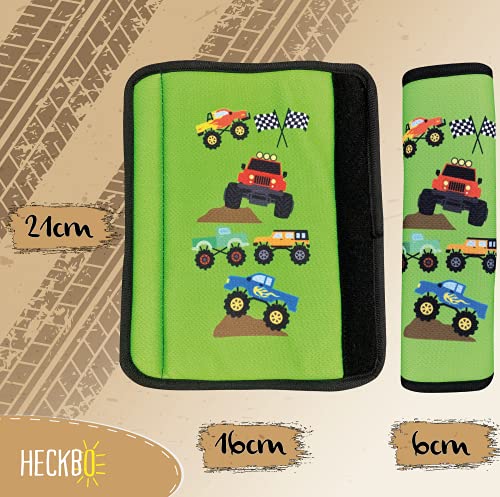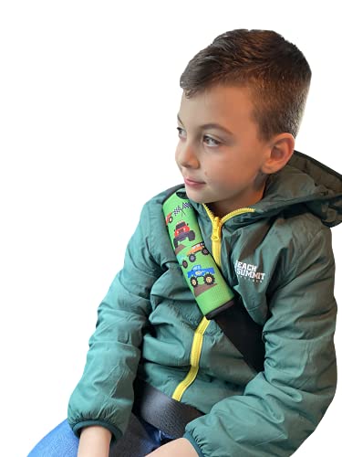 HECKBO 1x Protezione per Cintura di Sicurezza con Monster Truck - Spallina Imbottita, Imbottitura Cintura per Seggiolino Auto, Copricintura per Bambini e Bambine - Protezione contro Irritazioni
