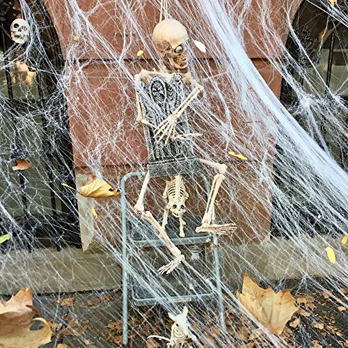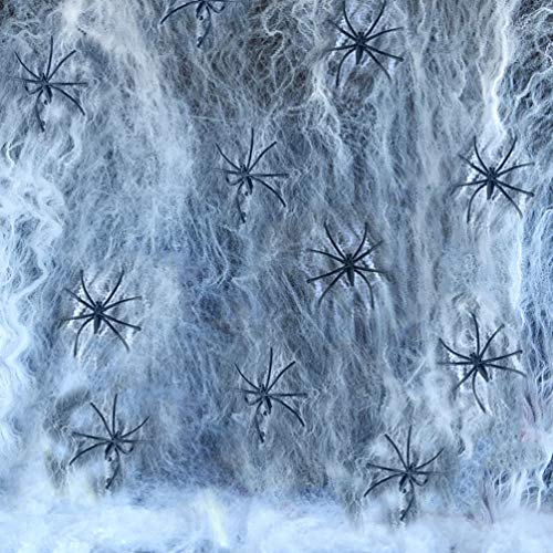 Heekpek 260g Ragnatela con 32 Ragni Tela di Ragno Bianca e Ragni di Plastica Nera Ragnatele Decorative Decorazione di Halloween Ragno Horror Decorazione del Partito (4 Sets)