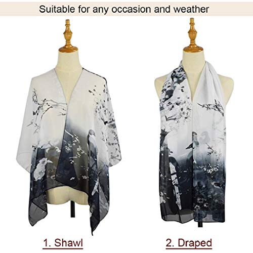 Heekpek Sciarpe In Chiffon Sciarpe Scialle Stampa Floreale Uccello Sciarpa Per Donna {Nero E Bianco Taglia Unica}