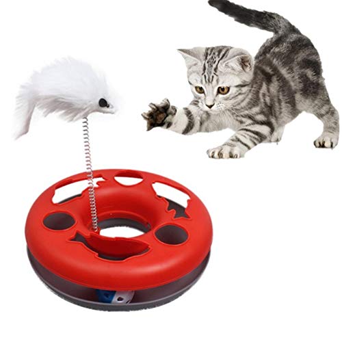 HEELPPO Giocattoli per Gatti Giocattoli di Intelligenza Giradischi per Gatti con Gioco A Molla Giocattolo per Gatti Giradischi per Cartoni Animati Intelligenti Interagire con I Gatti Red