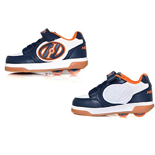 Heelys Plus X2 | Scarpe da Ginnastica a Due Ruote per Scarpe da Skate da Ragazzo (32 EU, Navy/White/Orange)