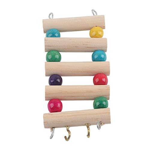 HEEPDD Scaletta pappagalli, Scaletta Legno con Perline Colorate Scalini per Arrampicata Ponte Gabbia per Uccelli Giocare Giocattolo per Conure Parakeet Budgie Cockatiels Lovebirds (5steps S)