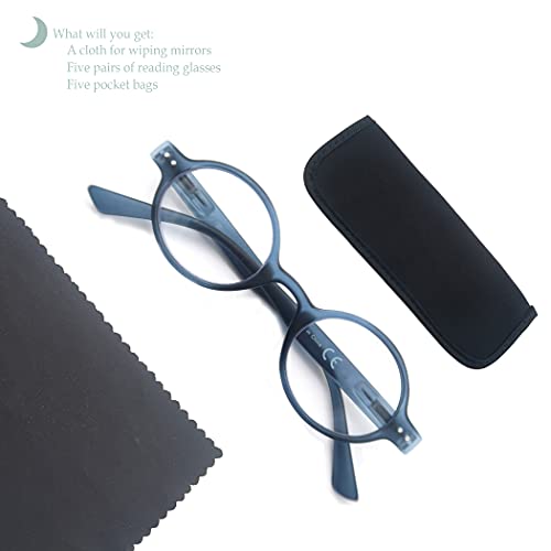 HEEYYOK Confezione da 5 occhiali da lettura uomo donna, moda Lettori ovali per Lente trasparente Cerniera a molla comfort con tasca