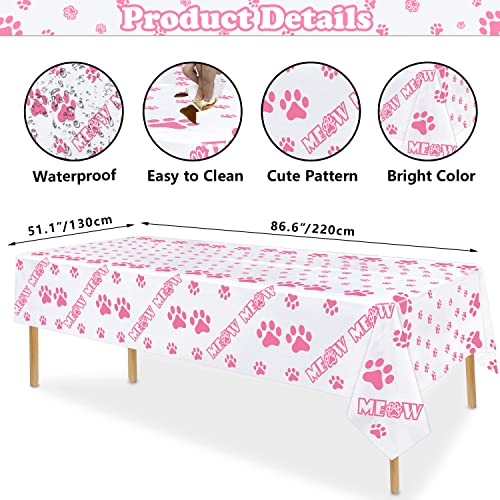 PACCHETTO VALORE - Set di decorazioni per feste per gattini che include 1 striscione HAPPY BIRTHDAY, 1 tovaglia con stampa zampa, 2 palloncini con zampa rosa in alluminio, 4 centrotavola a nido d'ape gatto, 9 topper per torta gatto, 20 palloncini in lattice con stampa zampa con ogni colore di 10;