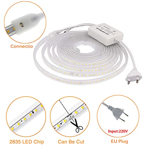 HEGEHE Striscia LED dimmerabile da 4 m, 220 V, SMD 2835, 120 LED/m, con telecomando a 15 tasti, impermeabile IP65