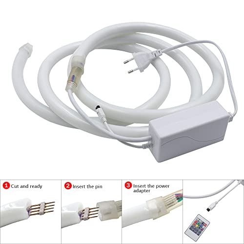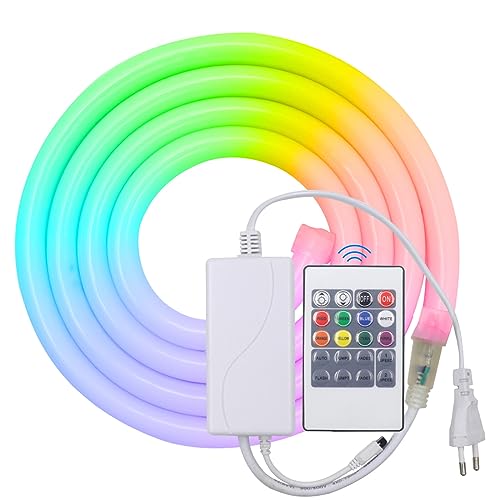 HEGEHE Striscia al neon a tubo tondo RGB 220V, flessibile impermeabile IP65, striscia LED con illuminazione a 360 gradi + controller, adatta per decorazioni fai da te per interni ed esterni (4M)